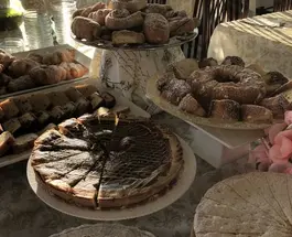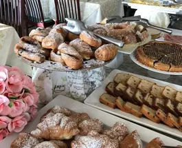 Frühstücksbüffet mit süßen und herzhaften Speisen (italienischer und kontinentaler Stil).